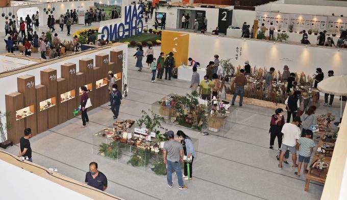 특히 산청 가을농장의 팜파티를 테마로 한 읍면 향토약선음식과 지리산 웨딩테마 야유회 음식차림 현장은 관람객들에게 포토존으로도 인기를 끌고 있다.
