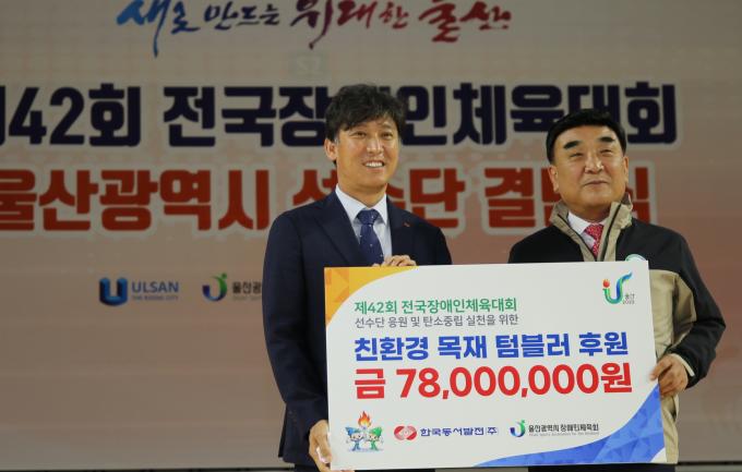 김영문 사장은 "울산시민에게 화합·도약·평화의 메시지를 전달하게 될 장애인체육대회가 안전하고 성공적으로 마무리 되기를 염원한다"며 "지역사회와 함께 건강한 에너지를 전파하며 공기업으로서 사회적 책임을 다하겠다"고 말했다.