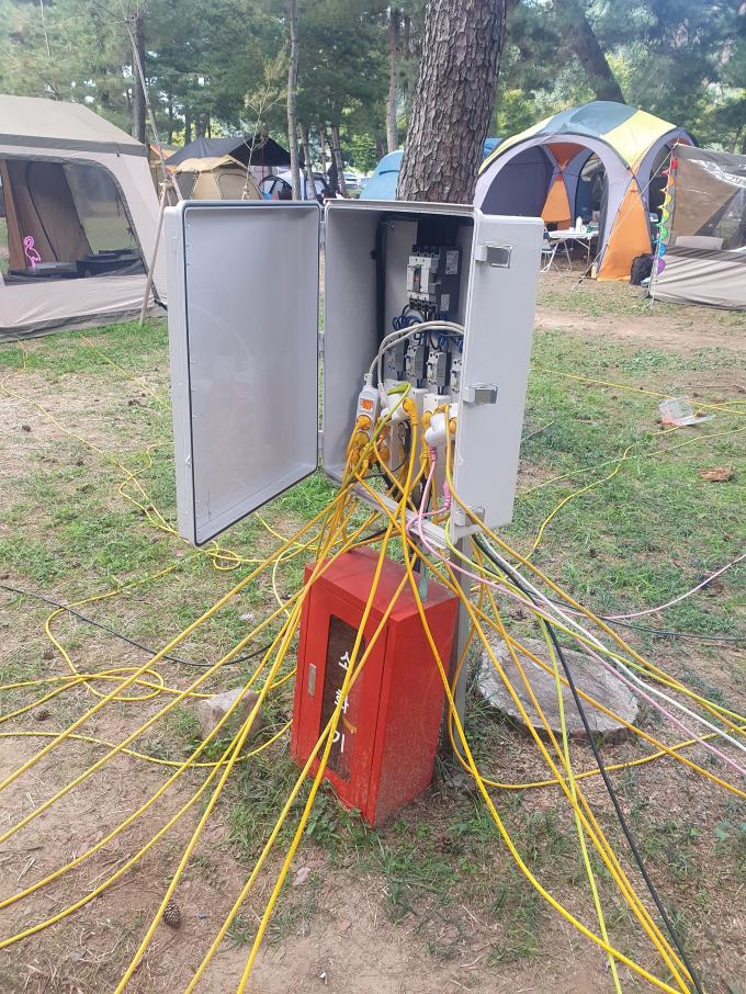 불법 야영장 업주는 50~100여m까지 전기선을 지하로 매설한 뒤 분기함을 설치해 야영객에게 전기를 공급하고 있다. 감전 등 안전사고 우려도 높은 실정이다.
