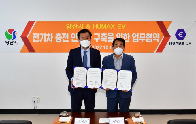 이날 협약에 따라 양산시는 부지를 제공하고, 휴맥스EV에서는 관내 공공시설 등에 부족한 충전기를 무상으로 설치하고 관리·운영하게 된다.
