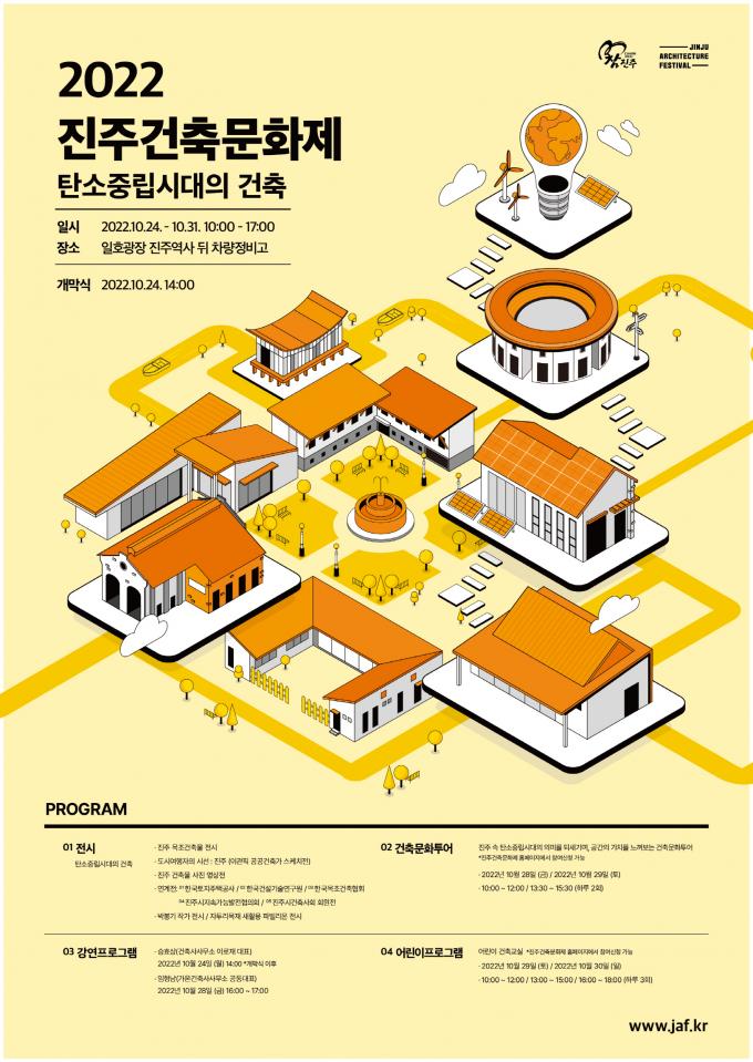 시 관계자는 "진주건축문화제는 경남 최초 도입된 공공건축가제도 운영의 성과이며, 탄소중립시대에 발맞추어 건립된 지역 공공건축물의 품격을 알리기 위한 행사"라며 "유관기관, 시민들이 함께 만들고 즐기는 건축문화 교류와 화합의 장"이라고 전했다.