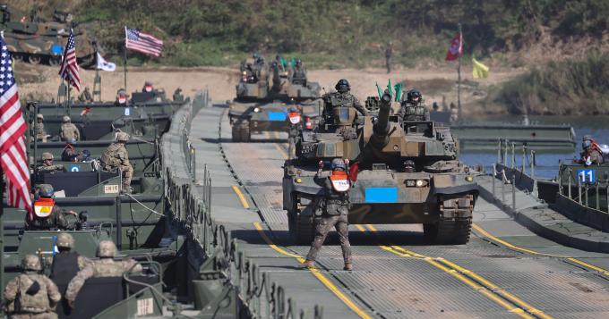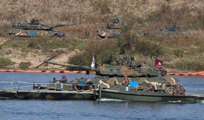 북한의 계속된 미사일 도발로 어느 때보다 한반도에 긴장감이 고조된 가운데 호국훈련의 일환으로 '한미연합 도하훈련'이 19일 경기도 여주 남한강 일대에서 열렸다. 이번 훈련은 적 공격으로 남한강 일대 주요 교량이 무너진 상황을 가정하고 진행됐다. 훈련에는 한미 장병 1000여 명과 우리 육군의 K21 장갑차와 K2 전차, K200 장갑차, 구난차 등 50여 대의 궤도 장비가 참가했다. 또한 리본 부교와 개량형 전술 부교 등 한미 공병장비 144대, 아파치와 코브라 등 공격헬기 등이 참가해 연합 합동 전력을 전개했다. 미군 측에서는 도하 장비와 병력 70여 명이 훈련에 참가했다.