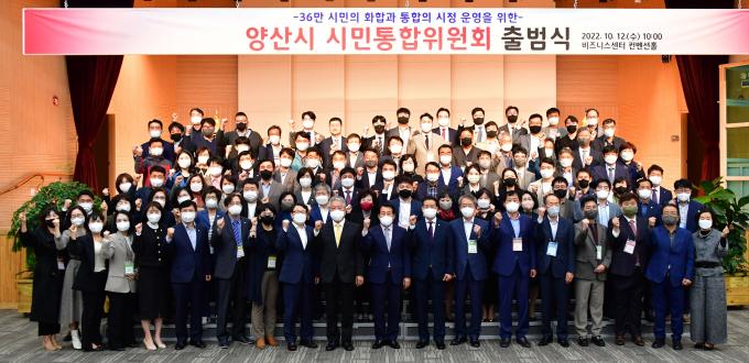 19일 지역 문화계 등에 따르면 지난 12일 출범한 양산시 시민통합위원회는 오는 21일 분과위원회별로 위원장을 선출, 본격 활동에 들어간다. 5개 분과위원회(경제산업·문화자치·복지교육·안전환경·도시개발) 회원은 위원회별 20명씩으로 구성돼 있다.