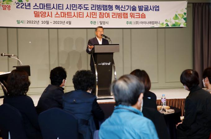 밀양시는 지난 9월부터 스마트시티 리빙랩에 참여할 시민을 모집, 최근 41명을 선발했다. 이날 발대식에서는 스마트시티 리빙랩 관련 기초교육과 지역문제에 대한 시민 의견조사 등 도시문제 해결을 위한 소통의 시간을 가졌다.