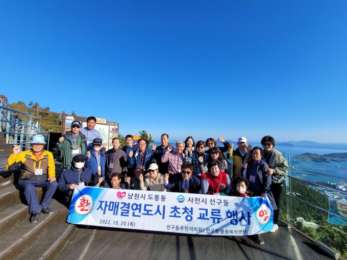 사천시 선구동행정복지센터(동장 허해연)는 지난 20일 자매결연 도시인 전북 남원시 도통동(동장 정남훈)을 초청해 상호 우호 증진의 시간을 가졌다.
