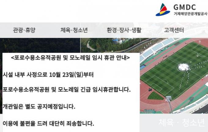 운영사인 거제해양관광개발공사는 이날 유적공원과 모노레일을 긴급 임시휴관하고, 개관일은 별도 공지하기로 했다.