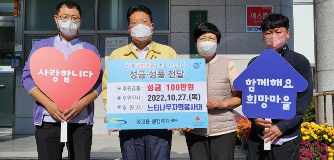 기장군 정관읍행정복지센터(읍장 김종천)는 관내 직장봉사단체인 느티나무자원봉사대가 27일 정관읍 취약계층 지원을 위한 성금 100만원을 기탁했다고 밝혔다.