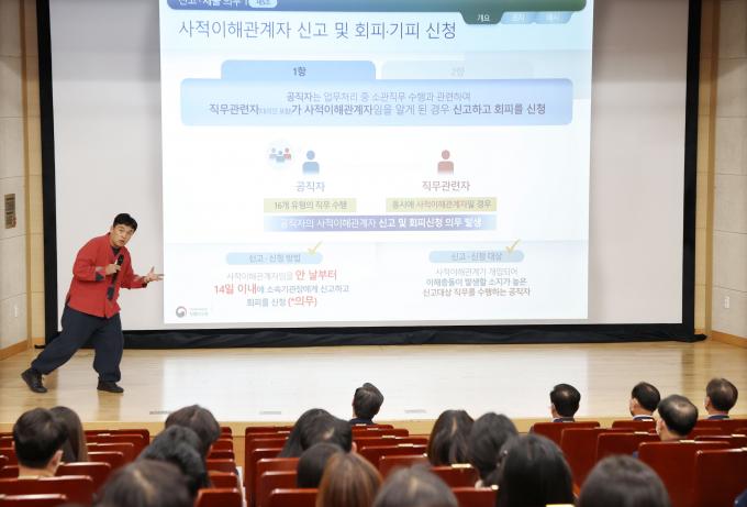 국민권익위원회 청렴연수원 정승호 강사는 공직자가 지켜야 할 10대 행위기준을 실제 사례 중심으로 설명했다.