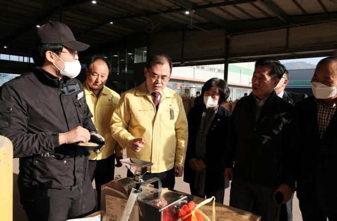 김부영 군수는 2일 창녕농협 산지유통센터 매입 현장에서 "일손 부족과 쌀값 하락으로 어려운 상황에서 2022년 공공비축미곡 매입 추진에 적극 협조해 주신 농가들에게 감사드린다"고 격려했다.