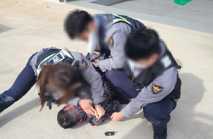 건축주의 신고를 받고 출동한 경찰은 사태를 정리하는 과정에서 거세게 항의하는 한 씨를 시멘트 바닥에 눕혀 뒷수갑을 채워 체포했다. 당시 서창지구대에서 현장에 출동한 경찰은 남자 2명과 여경 1명 등 3명이었다.