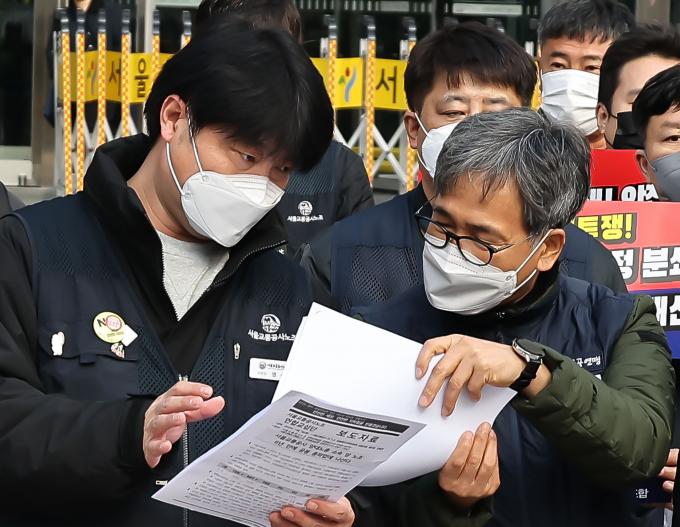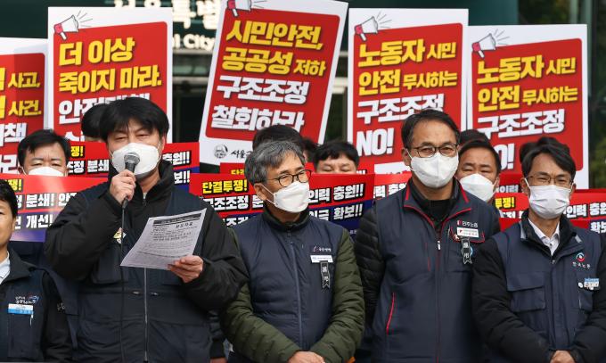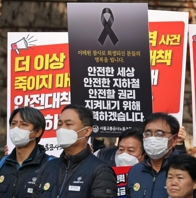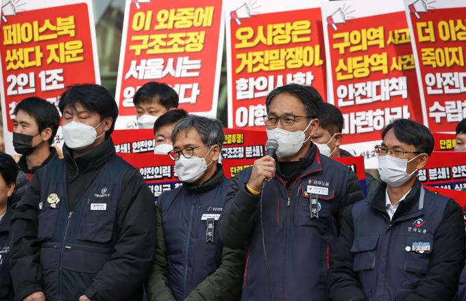 이들은 최근 발생한 '신당역 스토킹 살인 사건'과 'SPC 끼임 사망 사고' 등 위험천만한 '나 홀로 근무'를 방지해야 한다는 사회적 자성을 외면하고 오로지 실적성 인력 감축만 주장하는 서울시의 태도를 강력 비판하며 서울시와 공사의 입장 변화를 촉구했다.
