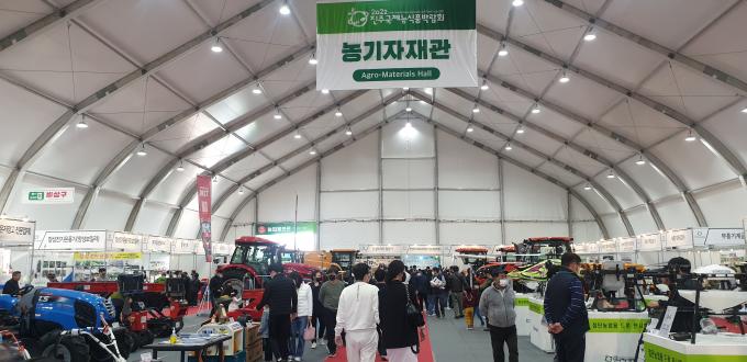 농기자재관은 농업의 신기술을 보여주는 첨단 농업용 드론 전시와 우수한 기술력을 보유한 항공방제용 무인헬기 등을 전시하고, 국내 중소형 생활밀착형 농기계 전시 등의 신기술도 선보여 관람객과 농업인들의 관심을 집중시켰다.