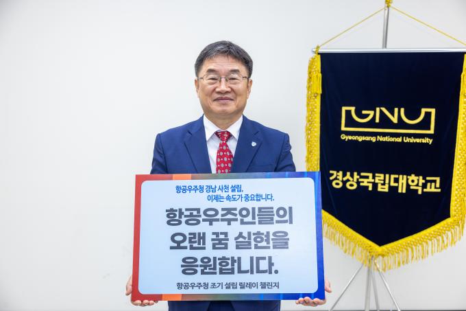 8일 경상국립대에 따르면 '항공우주청 경남 사천 조기 설립 릴레이 챌린지'는 지목받은 인사가 홍보 문구를 들고 찍은 사진을 사회관계망서비스(SNS)에 올리고, 다음 참여자 2명을 지목하는 방식으로 진행된다.