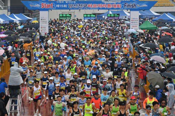 대회는 당일 오전 9시 양산종합운동장 주경기장에 집결, 9시30분부터 부문별로 15분 간격으로 출발해 영대교를 지나 양산천변 도로를 따라 통도사 방향으로 달리다 부문별 반환점을 돌아 종합운동장으로 돌아오는 코스다.