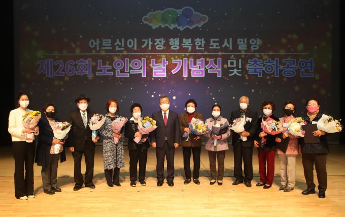 밀양시가 주최하고 (사)대한노인회 밀양시지회(지회장 신준철)가 주관하는 '제26회 노인의 날 기념식 및 축하공연'이 9일 밀양아리랑아트센터 대공연장에서 개최했다.