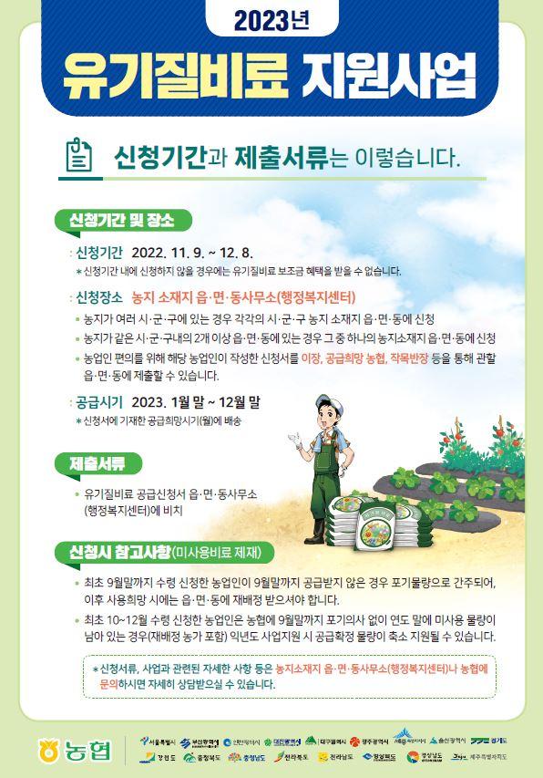 신청 대상은 본인의 농업경영체 정보에 등록된 농지에서 부산물비료를 사용하는 농업경영체다.