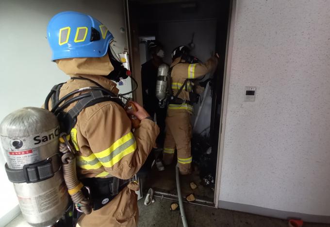 경찰과 소방당국은 현관 입구에 있던 쓰레기 봉투 안에서 불이 나 신발장까지 번진 것으로 보고 정확한 화재 원인을 조사하고 있다.
