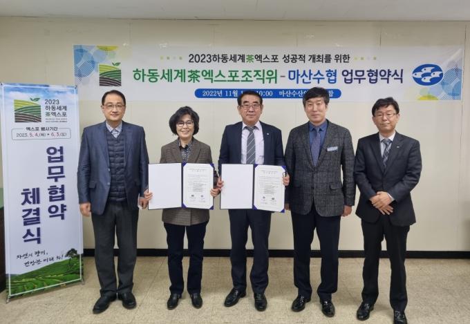 재단법인 하동세계차엑스포조직위원회(공동위원장 박완수 도지사·하승철 군수)는 지난 11일 마산수산업협동조합(조합장 최기철)과 2023하동세계차엑스포의 성공 개최를 위한 업무협약을 체결했다.
