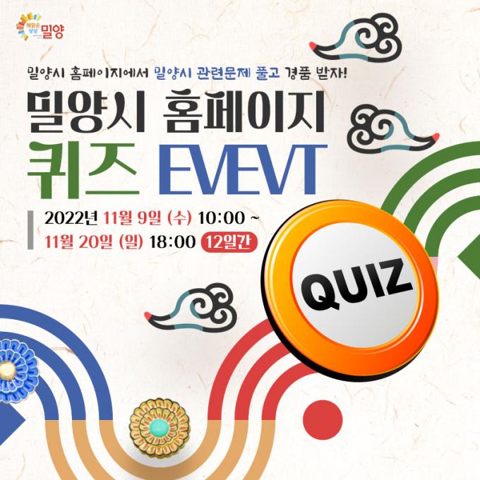 밀양시는 오는 20일까지 전국 누구나 참여 가능한 '밀양시 홈페이지 퀴즈이벤트'를 실시한다.