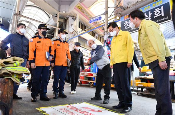 이날 전통시장 안전 점검은 지난달 말 대구 북구 농수산물도매시장(매천시장) 대형 화재로 다시 한번 화재 취약지에 대한 경각심이 높아진 데 따른 것이다.