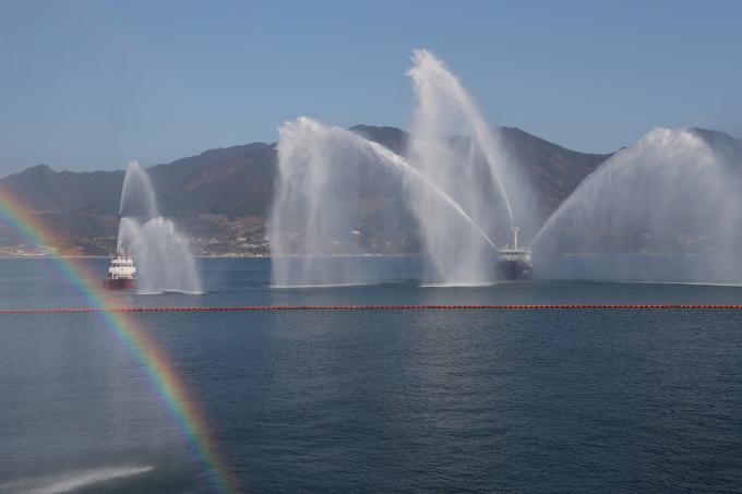 이번 훈련은 하역작업을 진행 중이던 유조선에 기관 고장을 일으킨 선박이 충돌해 화재가 발생하고 누유, 해양오염 사고로 이어지는 복합 재난상황을 가정해 진행됐다.