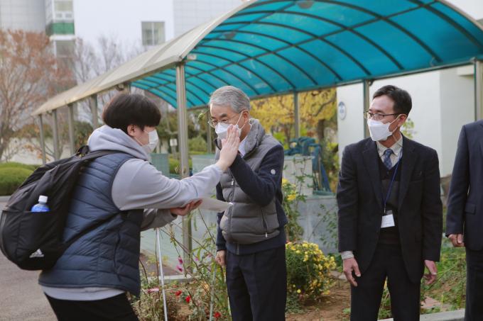 박종훈 도교육감은 이날 아침 일찍 창원 성산구 88지구 08시험장인 문성고등학교 고사장을 찾아 수험생들과 일일이 손뼉을 마주치며 격려했다.