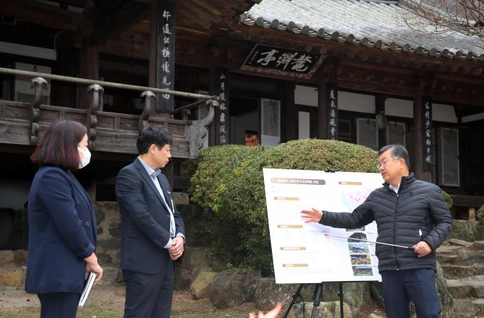 이어 교동 오연정을 찾아 한옥 고택 가꾸기 프로젝트 사업 추진현황을 파악했다. '한옥 고택 가꾸기 프로젝트'는 오연정을 비롯해 월연정, 혜산서원, 허씨고가, 안씨고가 5곳을 21억 원의 사업비로 정비해 관광콘텐츠로 활용하기 위한 사업이다.