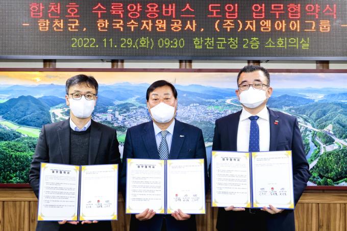 이날 MOU 체결식에는 김윤철 군수, 권기동 합천댐지사장, 이준암 ㈜지엠아이그룹 대표 등 10여 명이 참석했다.