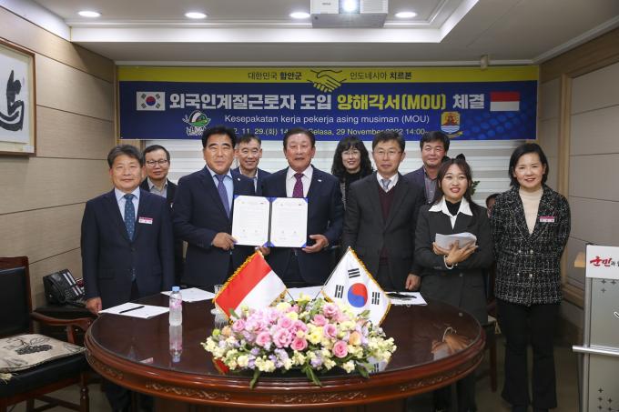 협약에 따라 인도네시아 치르본은 우수인력을 선발, 사전 적응 훈련을 통해 함안군 농가에서 잘 적응할 수 있도록 지원한다. 함안군은 인도네시아 근로자들에게 일자리 제공과 함께 교육, 상담, 의료지원을 할 계획이다.