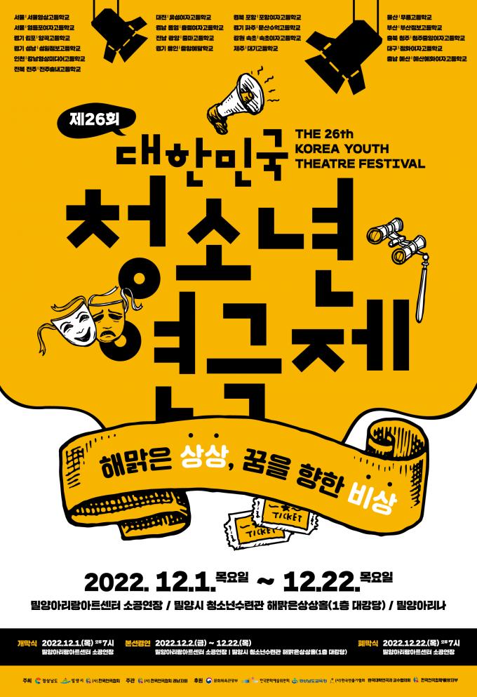 '대한민국 청소년연극제'는 경남도·밀양시·한국연극협회 공동주최, 한국연극협회 경남도지회(지회장 고능석) 주관으로 진행된다.