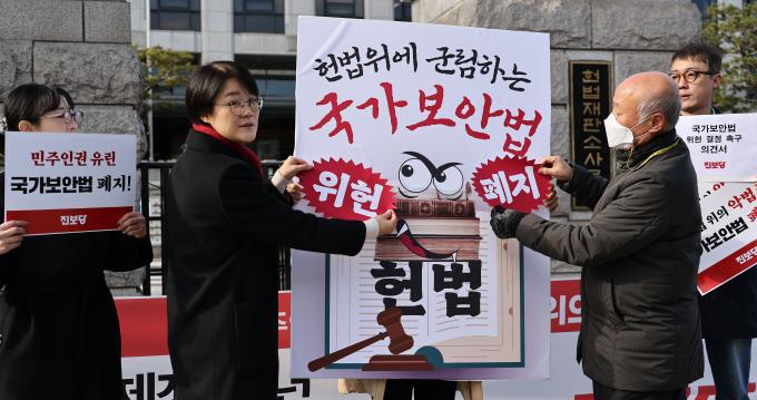 윤 대표는 이날 '위헌 결정 촉구 진보당 의견서'를 헌법재판소에 제출하기 전 "국가보안법의 뿌리는 일제 강점기에 만들어진 치안유지법으로 해방 이후 민주화운동과 통일운동 등을 탄압하는 도구로 활용돼 왔다"며 헌재의 위헌 결정을 촉구했다.