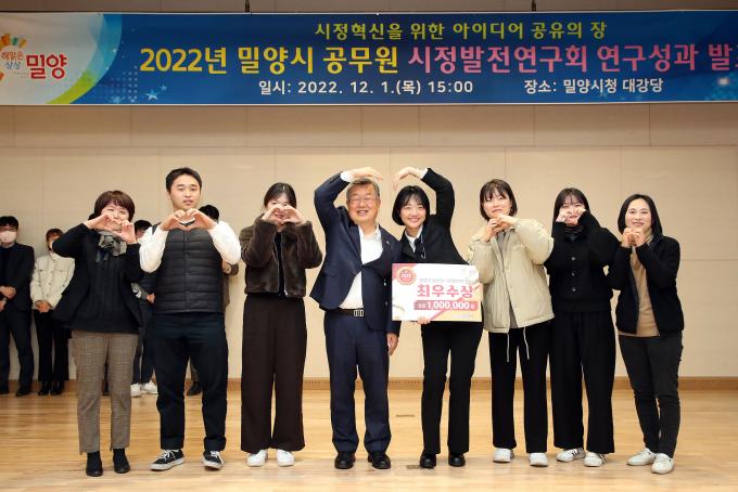 '시정발전연구회'는 밀양시 공무원들로 구성된 연구모임으로, 총 8개 팀 60여 명으로 운영되고 있다. 회원들은 혁신적인 시책 발굴을 위해 주기적인 브레인스토밍과 아이디어 회의를 진행해 왔다.