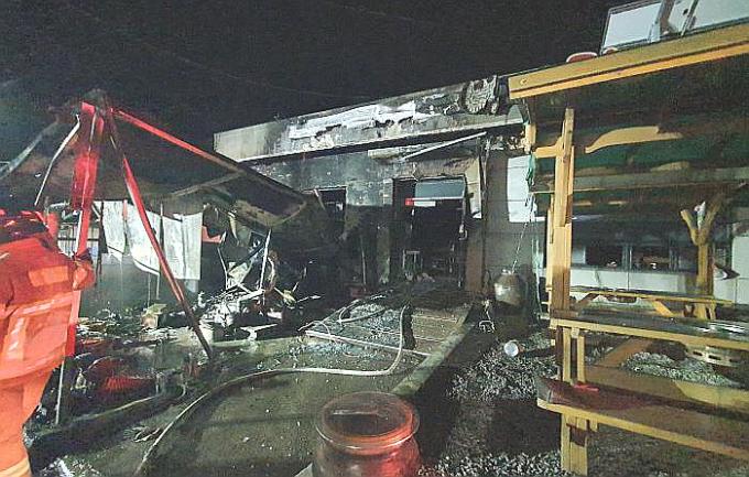 ▲ 2일 새벽 부산 기장 일광읍 횟집에서 발생한 화재 현장 [부산소방본부 제공]