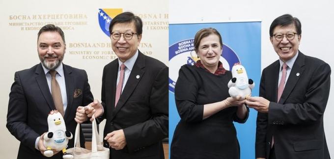 지난달 30일 불가리아에 이어 두 번째 방문국인 보스니아헤르체고비나에 도착한 특사단은 대외무역경제부 장관을 만나 경제협력 확대를 제안했고, 코샤라츠 장관은 이를 환영했다.