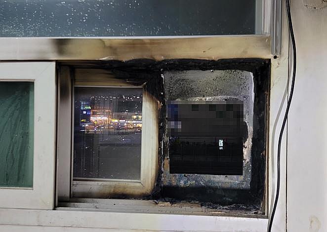 ▲ 4일 오후 부산 신평지하철 역사 용역업체 휴게실에서 발생한 화재 현장 모습 [부산소방본부 제공]