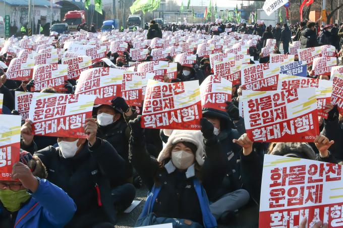 민주노총은 이날 의왕을 비롯해 전국 15개 지역에서 동시다발 집회를 열었다. 화물연대는 안전운임제 영구화, 적용 차종과 품목을 기존 컨테이너 시멘트 외에 철강재, 자동차, 위험물, 사료 곡물, 택배 지·간선 5개 품목으로 확대, 안전운임제 개악안 폐기 등을 요구하며 지난달 24일 총파업에 돌입했다.