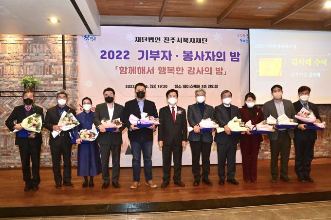 코로나 탓에 3년 만에 열린 진주시복지재단 기부자·봉사자의 밤 행사에서는 씨엔텍코리아 진주지점(대표 김영연)을 비롯한 단체 등과 김택주 씨 등 개인 기부자들이 감사패를 받았다.