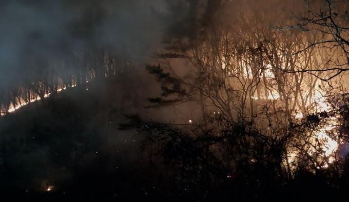 산림당국은 진화 장비 16대, 대원 91명을 동원해 2시간15분 만인 8시 40분께 주불 진화를 완료한 뒤 뒷불 감시를 하고 있다.