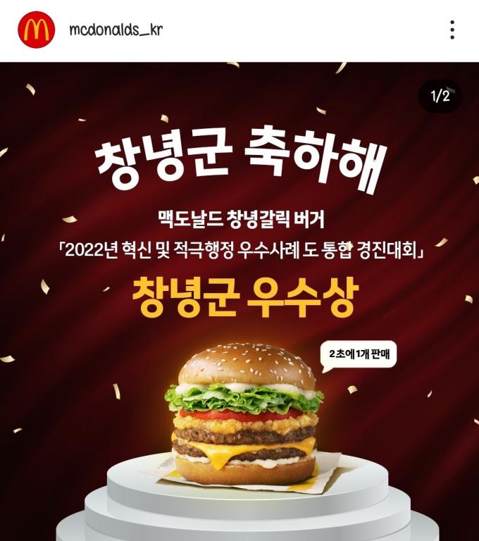 맥도날드, SNS에 '창녕군 축하해' 게시