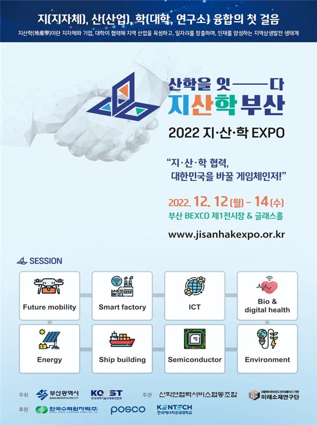 '2022 지산학 엑스포'는 부산형 지산학협력 모델의 전국적 확산을 목표로, 부산시·한국과학기술단체총연합회 공동주최로 마련된다.
