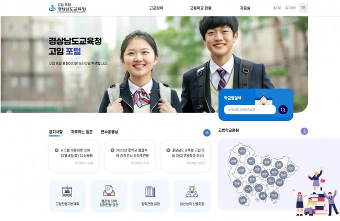 앞으로는 고등학교 진학에 관심 있는 도민은 2023학년도 고등학교 입학 정보와 도내 모든 고등학교 현황 등을 '경남도교육청 고입 포털'에서 한눈에 살펴볼 수 있게 됐다.