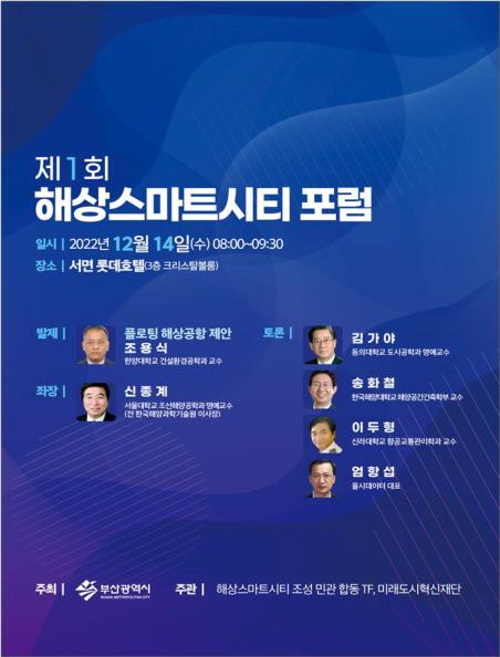부산시가 주최하는 이 포럼은 해상스마트시티 조성 민관 합동 전담팀(TF), 미래도시혁신재단 공동 주관으로 올해 처음 마련된다.