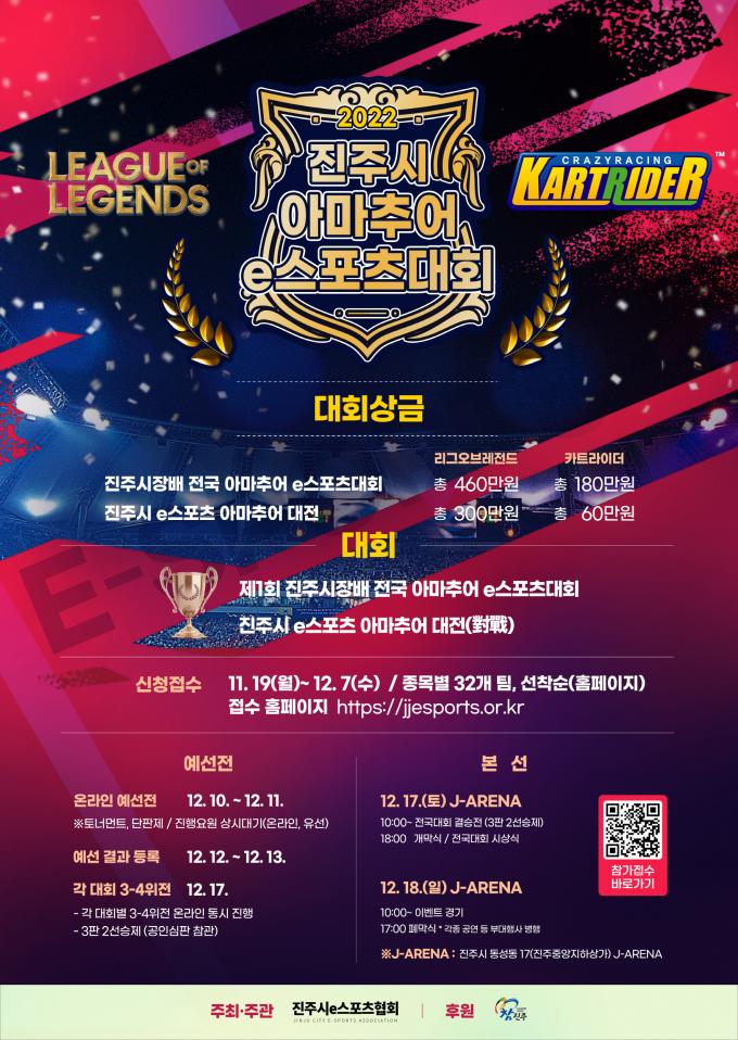 14일 진주시에 따르면 이번 대회는 전국대회인 '제1회 진주시장배 전국 아마추어 e스포츠 대회'와 지역대회인 '진주시 아마추어 e스포츠 대전'로 나눠 진행된다.
