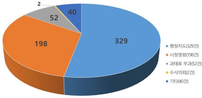 적발된 사례에 대한 조치 내용은 △행정지도 329건 △시정명령 198건 △과태료 부과 52건 △수사의뢰 2건 총 621건이다.