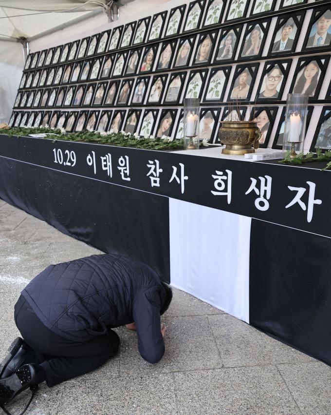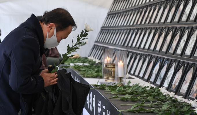 몇몇 조문객은 차디찬 바닥에 엎드려 절을 하며 눈시울을 붉혔다. 16일에는 참사 현장에서 49재 추모제가 열린다.