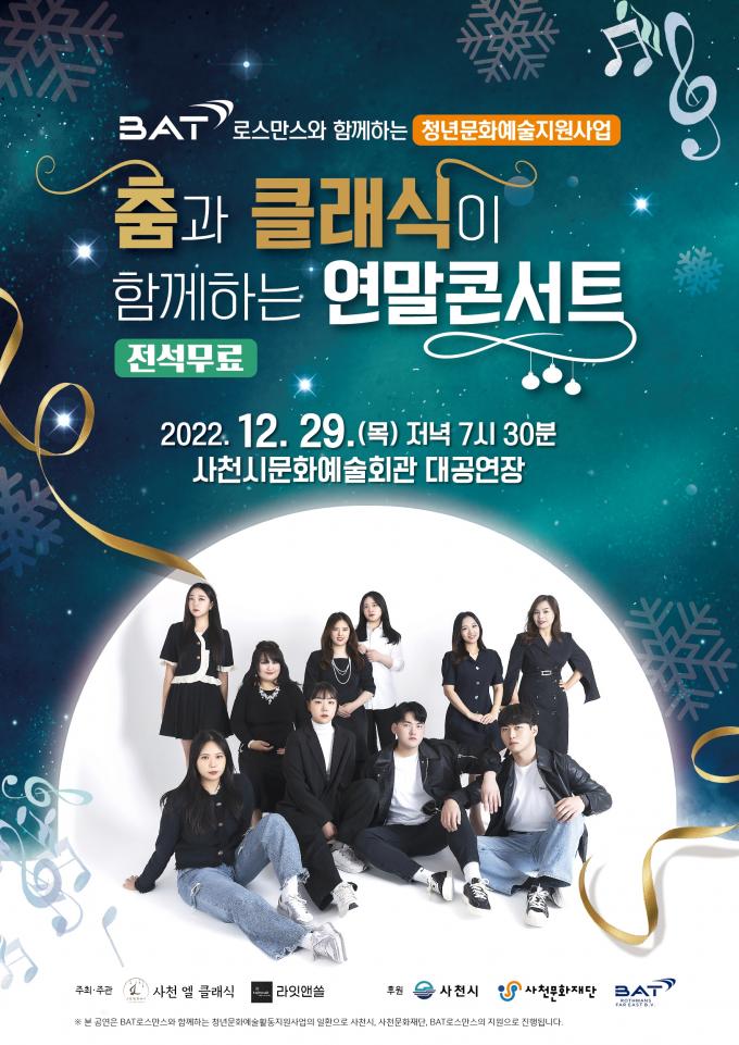 21일 사천시에 따르면 지역 청년예술가들로 구성된 사천 엘 클래식(대표 김향원), 라잇앤솔(대표 김예림)은 29일 오후 7시 30분 사천시문화예술회관 대공연장에서 '춤과 클래식이 함께하는 연말 콘서트'를 개최한다.