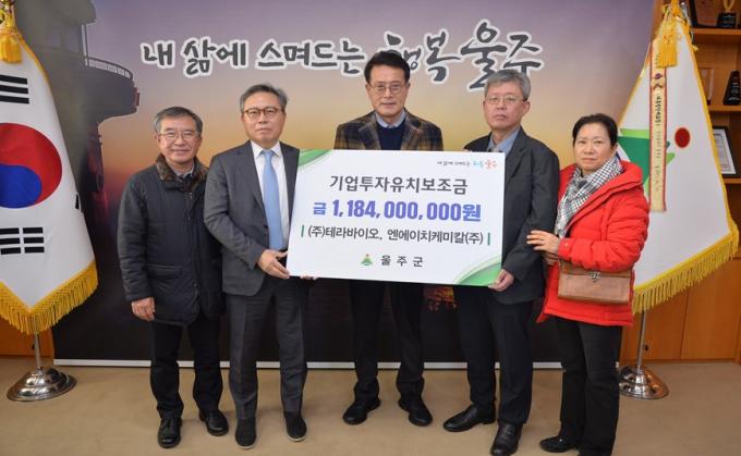 노준혁 테라바이오 대표는 "이번 울주군이 지원한 투자유치 보조금은 중소기업의 신규 사업 투자와 지역 일자리 마련에 중요한 마중물"이라며 "울주군 향토기업으로서 사회공헌과 지역사회 발전을 위해 노력하겠다"고 강조했다.