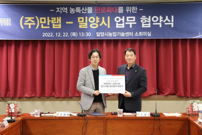 이번 협약을 통해 밀양시는 지역 특산물인 딸기를 만랩커피에 납품하고, 만랩커피는 밀양시의 안정적인 딸기 공급을 바탕으로 내년 1월 밀양딸기 신메뉴를 판매 예정이다.