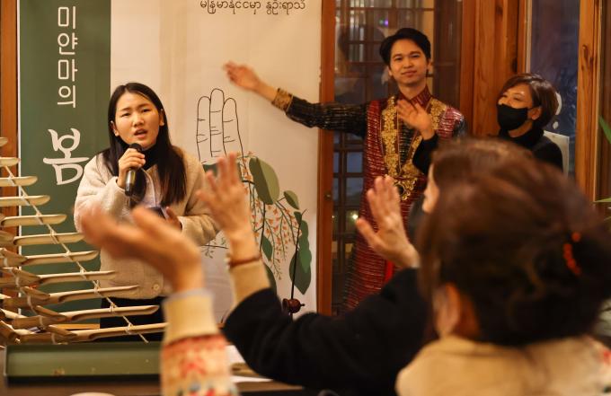 극단 신세계와 미얀마의 봄, 버마 민주화를 위한 작가모임 등이 함께 주최한 일일 카페가 25일 오후 서울 종로구 인사동의 카페 열시꽃에서 열렸다. 미얀마의 반독재운동인 '미얀마의 봄'을 이끌고 있는 미얀마 시민방위군과 피난민들에게 후원금을 전달하기 위한 행사다.
