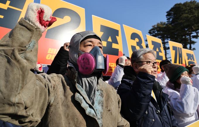또한 "그들이 노조법 개정을 반대하고, 누더기 된 중대재해처벌법 마저 개악하고 나아가 주52시간 노동을 주69시간으로, 파견업종을 더 확대하고, 주휴수당을 없애고, 파업 시 대체인력을 허용해 노동자의 마지막 저항권까지 빼앗겠다고 나서고 있다"며 "일하다 죽지 않게, 차별받지 않게 진짜 사장들이 비정규직 문제에 대해 책임을 지게 하는 노조법 2조 개정을 위해 오체투지에 나섰다"고 밝혔다.